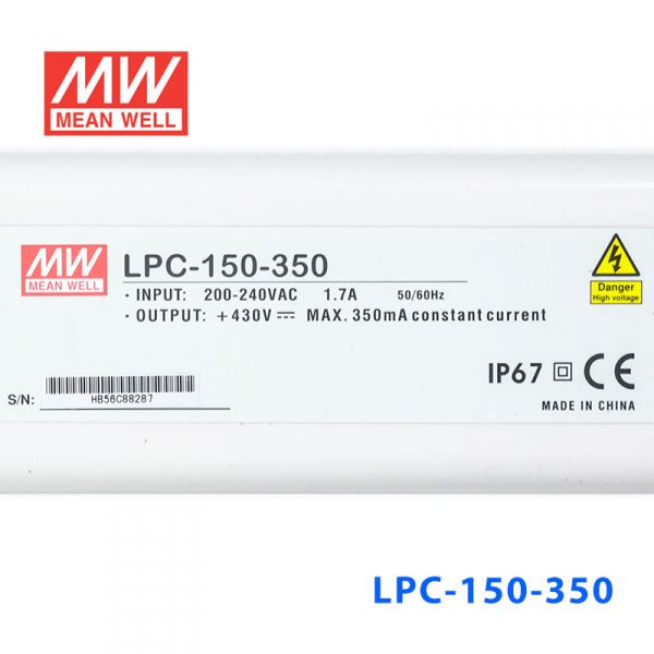 LPC-150接受180~305VAC交流电压输入,并提供350mA~3150mA等十种LED相关应用最常使用之直流电流输出。因全系列之工作效率可达90%,加上机身内部灌满可提昇散热能力之导热矽胶,使得此系列虽无内建之风扇仍可於自然风冷散热下工作於-25~+50℃之环温。LPC-150之防护能力经第三方测试机构评判为IP67等级,证明此系列之机型可充分地避免灰尘与湿气对於内部电子零件带来之损坏。其他功能包括短路保护、过电压保护、过温度保护等。适合之应用包含装饰照明、建筑照明、洗墙灯等各式恒流之LED照明相关应用。