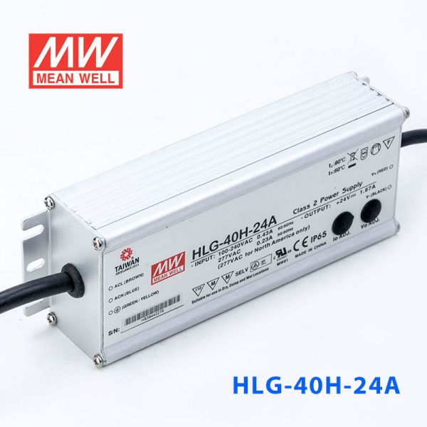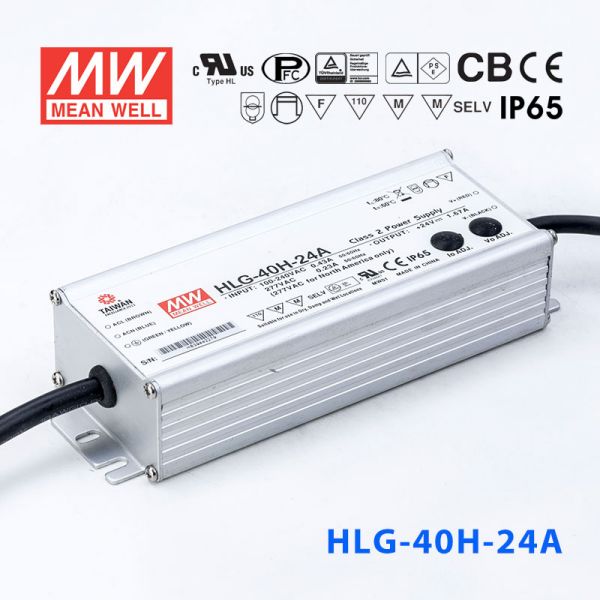 HLG-40H-24A 40W 24V 1.67A 强耐环境恒压+恒流PFC高效铝壳IP65防水LED电源(恒压恒流值可面板设定)