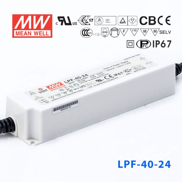 LPF-40-24 40W 24V 1.67A 恒压+恒流有PFC高效率塑壳IP67防水LED电源