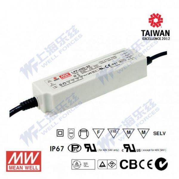 LPF系列产品是获得台湾2012精品奖的塑壳灌胶,IP67f防护等级的优秀LED照明防水电源,具有双级功率因素校正功能,恒压+恒流工作方式,