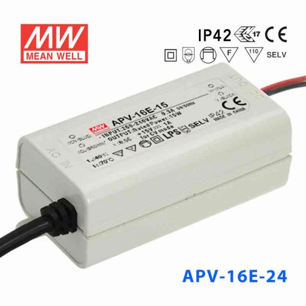 APV-16E-24 16W 24V 0.67A 明纬牌恒压输出防水塑壳LED照明电源