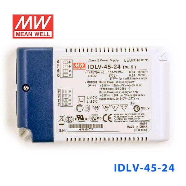 IDLV-45-24 45W 24V 1.88A 恒压输出无频闪二合一调光明纬LED开关电源