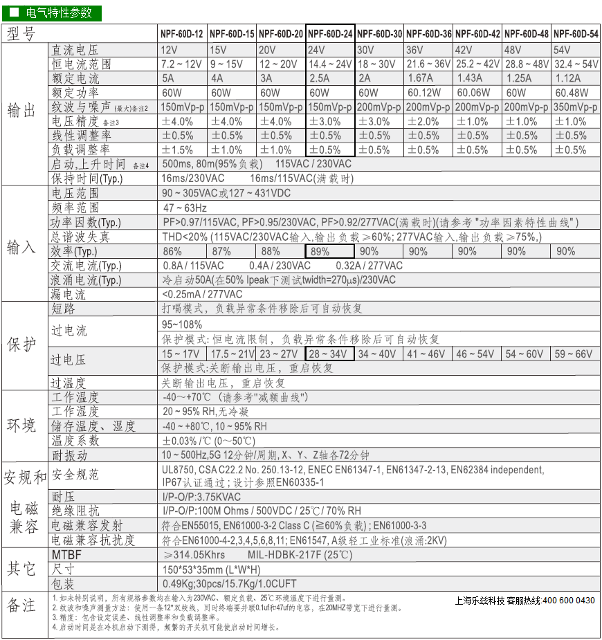 NPF系列是防水型单路输出的LED电源,它采用90~305Vac全范围交流输入,内置PFC功能